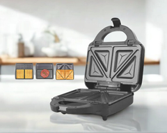 Marka:Hoffmans Modeli: HM-3019 Lloji:Multigatues elektrik3 ne 1 FUUQIA:1000W PLLAKA te kembyeshme:3forma te ndryshme,sanduica,tost,sanduica te mbyllur dhe te thekur Pllaka waffle: per gatimin e waffle Matriali i pllakave: te gjitha pllakat kane shtrese jo mgjitese Treguesein LED...