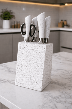 • Material: çelik inox (stainless steel) + doreza ergonomike • Set komplet me disa lloje thikash + gërshërë • Bllok mbajtës kompakt dhe modern • Teh i mprehtë dhe rezistent ndaj ndryshkut • Dizajn elegant, i përshtatshëm për kuzhina moderne • Kapje e rehatshme dhe e sigurt gjatë...