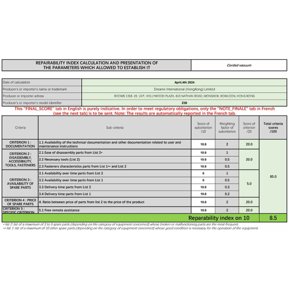• Repairability Index: 8.5