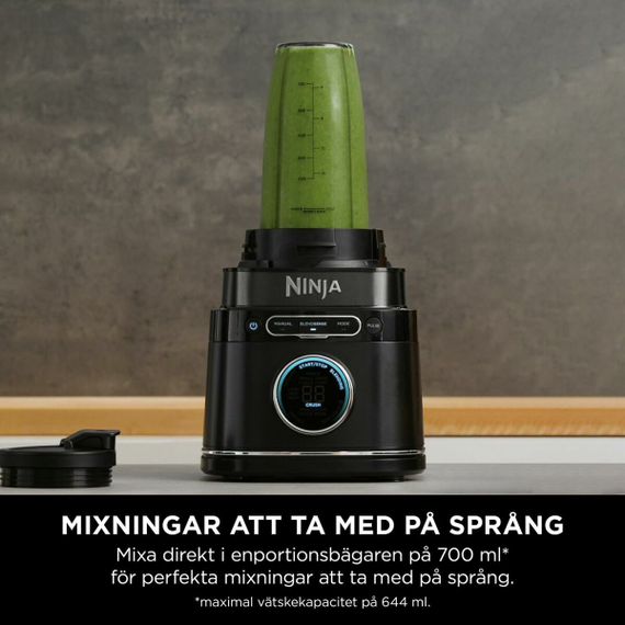 The TB301EU blender from NINJA is a versatile and powerful appliance designed to simplify food and drink preparation at home. With a 1200 W power, this blender ensures efficient performance to crush, blend, and chop ingredients quickly, including a specialized ice-crushing function, ideal for making cocktails and smoothies with perfectly smooth textures. Its 2-liter capacity is suitable for preparing large quantities in one go, making it practical for families or gatherings. It features a built-in display that offers intuitive control over 15 operating modes and 10 adjustable speeds, allowing precise and comfortable adaptation to various recipes. Manufactured in black, its finish combines elegance and modernity, while its design is made to be easy to clean, reducing time and effort after daily use. It operates with corded power supply, ensuring a stable and continuous connection without relying on batteries. The combination of these features makes the Ninja Detect Power Blender Pro a balanced choice between power, advanced function, and ease of use, suitable for users seeking a robust and versatile kitchen appliance.