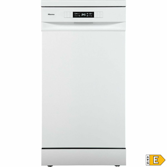 The Hisense HS522E10W dishwasher is a compact and functional appliance designed to optimize space in kitchens with limitations, thanks to its 45 cm width (44.8 cm actual). This white model has a suitable capacity for 9 place settings, providing an effective solution for small households or couples. Its energy rating E reflects a balance between power consumption and performance, helping to protect the environment and reduce electricity costs within its segment. The dishwasher features a built-in display that makes selecting and monitoring different programs easy, including options tailored to various needs such as Intensive, ECO, Short Intensive, Soak, Hygiene, Universal, and Quick, covering everything from deep cleaning to faster cycles for lightly soiled dishes. Regarding noise comfort, its 47 dB noise level places it within a reasonably quiet range, ideal for homes valuing peaceful environments during operation. It operates on a standard 220 V power supply and comes equipped with a European (EU) plug, facilitating installation in most European homes without adapters. The white design and efficient integration make this dishwasher a practical choice for those seeking a simple and effective appliance, combining compact size and a variety of programs for versatile cleaning. This Hisense model stands as a functional and affordable solution to cover basic washing needs while maintaining good performance and usability.
