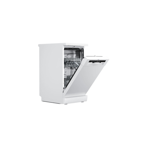The Teka DFS 44750 dishwasher is an appliance designed for those seeking efficiency and convenience in a compact format. It features a white color that easily integrates into any kitchen and a 45 cm width, ideal for small spaces without sacrificing capacity. With a 10-place setting capacity, it suits medium-sized households, offering optimal daily wash management. Its energy rating E reflects controlled consumption, balancing performance and efficiency, suitable for energy-conscious users. It offers varied programs including Auto, Eco, Intensive, Prewash, and Silent, allowing cycle adjustment to specific needs—from quick cleaning to heavy-duty washing or quiet operation for flexible hours. Key technical features include a 9-liter water consumption per cycle, promoting responsible and economical resource use. The design includes a built-in display for easy function selection and control, and a child lock system ensuring home safety by preventing accidental use during the wash cycle. Its actual width of 44.8 cm allows precise installation in standard cabinets. This model lacks a third cutlery tray, focusing on a practical interior for cutlery and dishes. Specific programs like Silent enable comfortable use without noise disturbance, adapting to different lifestyles and schedules. In short, the Teka DFS 44750 is a practical and versatile choice for those needing an efficient dishwasher with sufficient capacity and features designed to ease daily use in kitchens with limited space.