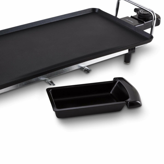 The Livoo electric grill is a device designed to provide a practical and efficient solution for grilling food. It features a compact black design that combines functionality with a sober aesthetic, ideal for any kitchen. Its 2000 W power and 230 V voltage ensure fast and even heating, making it easier to cook quickly and maintain a constant temperature throughout the process. The electric grill is perfect for grilling meats, vegetables, or Teppan Yaki-style dishes, offering a suitable surface for even browning without the need for extra fats. Additionally, it includes a plug compatible with the European (EU) standard, ensuring compatibility with most household outlets in Spain and other European countries. Its construction is designed for comfortable and safe use, making it a practical choice for those seeking smoke-free, hassle-free cooking with easy cleaning after use. Overall, this Livoo electric grill is a functional alternative for those who want to enjoy indoor grilling with energy efficiency and discreet design.