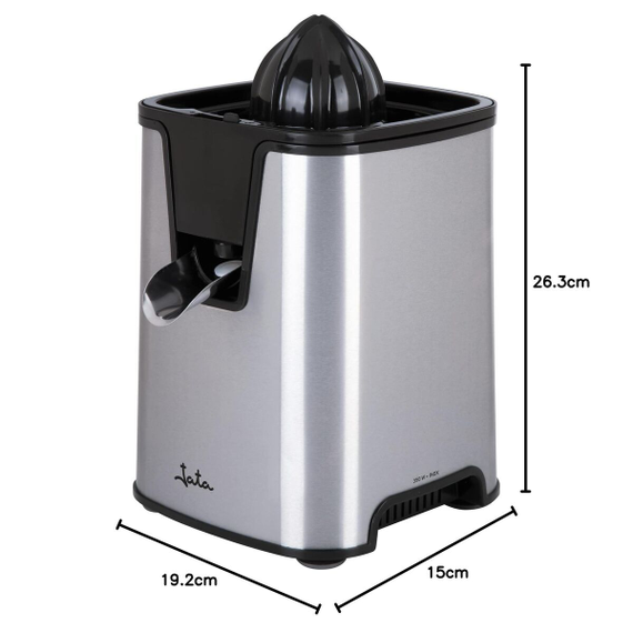 The JATA JEEX1046 electric juicer is a practical and efficient solution for daily preparation of fresh juice at home, optimizing both performance and user convenience. Equipped with 350 W of power, this juicer ensures fast and effective citrus extraction, delivering the maximum amount of juice each time. Its design features a combination of high-quality materials, such as stainless steel, providing durability, strength, and a modern look that fits easily into any kitchen. The transparent jug allows you to monitor the juice level at all times, making it easy to control the process. One of its most notable features is the anti-drip system, which prevents spills after juicing and keeps your countertop clean, complemented by a non-slip base for added stability and safety during operation. Additionally, its easy-to-clean structure allows for simple maintenance, as the removable parts can be detached for hassle-free washing—especially convenient for frequent use. Designed with functionality and simplicity in mind, the JATA JEEX1046 meets the needs of those seeking speed and cleanliness when making natural juices, offering robustness and reliability for everyday use. In summary, this versatile electric juicer combines power, ease of use, and practical details to provide a comfortable and efficient juicing experience in any home.