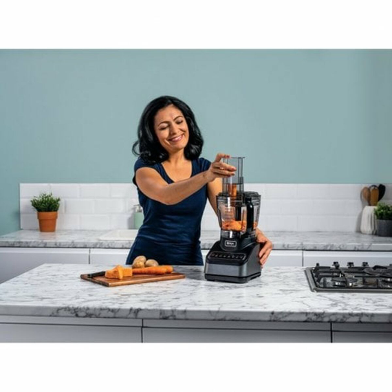 The BN650 Food Processor by NINJA is an appliance designed to simplify and speed up daily cooking tasks, combining power and functionality in a modern, durable design. This processor stands out for its 850 W power, enabling efficient performance to process ingredients of various textures and volumes effortlessly. Its 2.1-liter bowl capacity offers a suitable volume for preparing everything from sauces and cocktails to doughs or large food quantities, fitting well for everyday home use. It is made with high-quality materials, including stainless steel and durable plastic, ensuring durability and easy cleaning. Its black finish adds an elegant, neutral touch that blends well in any kitchen. This model features dishwasher-safe parts, facilitating maintenance and hygiene. It also offers multiple speeds to adjust power to specific preparations, optimizing results and control during use. Additionally, its design allows easy disassembly and cleaning of components, contributing to a practical and comfortable experience. Thanks to these features, the BN650 provides a versatile and reliable solution for those seeking an efficient food processor with a balanced combination of capacity, power, and durability in a mid-range appliance, ideal for daily homemade preparations.