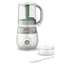 The Philips Avent 4-in-1 food processor is a versatile appliance designed to make food preparation practical and efficient. With a compact grey design and a 1-litre capacity, this model fits perfectly in modern kitchens, allowing you to prepare small to medium portions. Its 4-in-1 functionality includes steaming, blending, heating, and defrosting, combining these tasks in one device that simplifies cooking, especially for baby food or dishes requiring careful cooking. The steam cooking function is ideal for preserving the nutritional properties and natural flavor of food, while the blending function ensures a smooth texture, essential for purees or creams. Additionally, the heating and defrosting features offer flexibility to quickly adjust preparation time according to user needs without using other devices. Its intuitive design and easy cleaning complete its offer, making this food processor a practical tool for those looking to save time in the kitchen without sacrificing healthy eating. In short, the Philips Avent 4-in-1 represents a complete solution for food preparation that combines efficiency, multifunctionality, and quality in a compact, modern format.