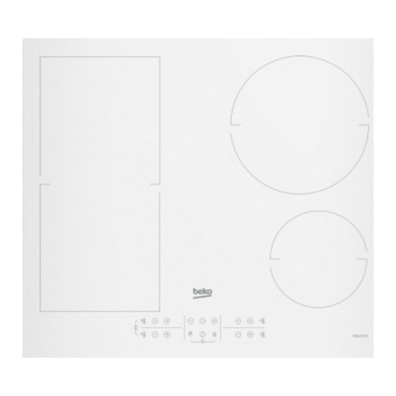 Beko HII64200FMTW. Product colour: White, Appliance placement: Built-in, Hob width size: 60 cm. Simmer cooking zone: 1800 W, Regular cooking zone: 2300 W, Large cooking zone: 2300 W. Control type: Touch, Control position: Front / Top front, Clock type: Electronic. Connected load (electric): 7200 W, AC input voltage: 220 - 240 V, AC input frequency: 5 Hz. Width: 580 mm, Depth: 510 mm, Height: 55 mm