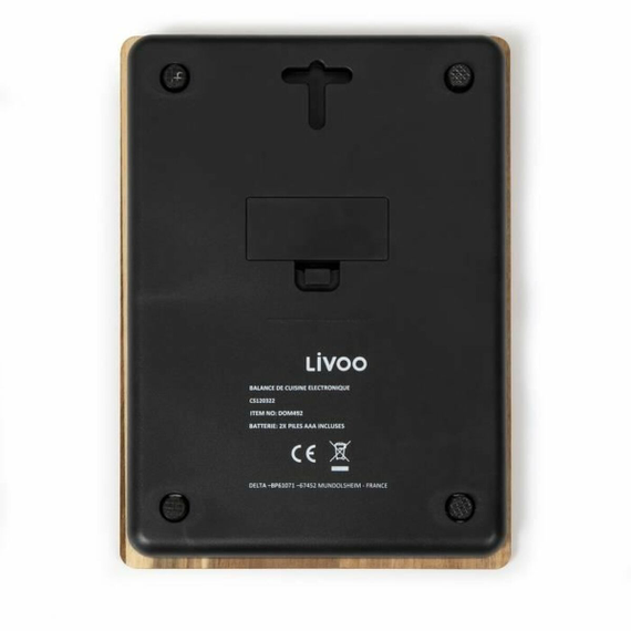 The Livoo DOM492 electronic kitchen scale is a practical and reliable tool designed to facilitate precise ingredient measurement in the kitchen. Built with a acacia wood surface, it combines functionality with an elegant finish that naturally fits into any culinary space, adding warmth and sophistication. This model offers the accuracy required by both amateurs and professionals to achieve exact preparations, essential for recipes demanding strict measurements. The electronic technology ensures a quick and clear weight reading, enhancing the user experience by providing consistent results. Its compact and minimalist design allows for easy storage when not in use, without sacrificing the strength and durability of the selected natural material. The Livoo scale is suitable for weighing from small amounts to larger portions, making it easier to control the cooking process. In short, this scale represents a functional and aesthetic solution for those who value precision and order in their kitchen environment.