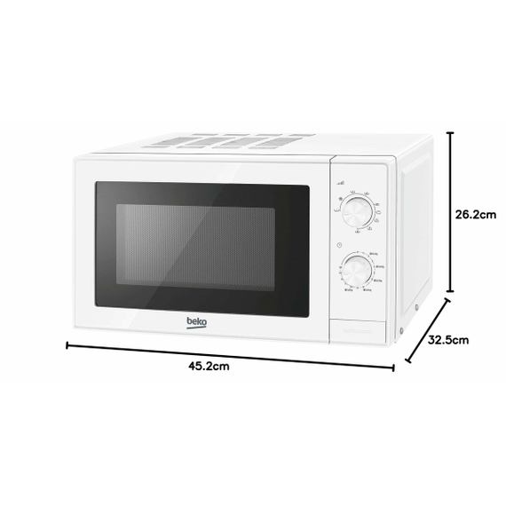 Beko MGC 20100 W. Appliance placement: Countertop, Interior capacity: 20 L, Control type: Rotary. Connected load: 700 W. Width: 452 mm, Depth: 325 mm, Height: 262 mm