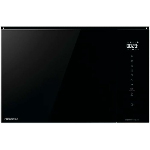 The Hisense BIM325GI63DBG microwave with grill is an appliance designed to deliver efficient and versatile performance in the kitchen. It features a 25-liter interior capacity, ideal for preparing meals for families or users needing enough space for medium-sized dishes. Its 900 W microwave power enables fast and even cooking, while the 1200 W grill power provides browning and grilling functions, allowing a perfect finish on dishes requiring a crispy texture or golden touch. This model includes an inverter motor, a technology that optimizes power distribution, allowing more precise cooking and energy efficiency, while better preserving food properties. It offers five power levels to adjust settings according to the type of preparation, providing greater flexibility and control in the kitchen. The control panel is fully touch-sensitive, offering a modern, intuitive, and easy-to-clean interface, complemented by a built-in display that facilitates precise programming and monitoring of cooking cycles. The exterior design in black color combined with its glass interior blends aesthetics and functionality, ensuring durability and resistance to stains or scratches. Additionally, this microwave features a child lock system, adding extra safety in homes with children by preventing accidental use. Made in China, this model integrates features that allow both cooking and grilling without complications, making it a balanced option for the average consumer who needs a reliable, efficient, and easy-to-use microwave with grill. Overall, the Hisense BIM325GI63DBG offers practical functions and advanced technology to meet various cooking needs with convenience and precision.