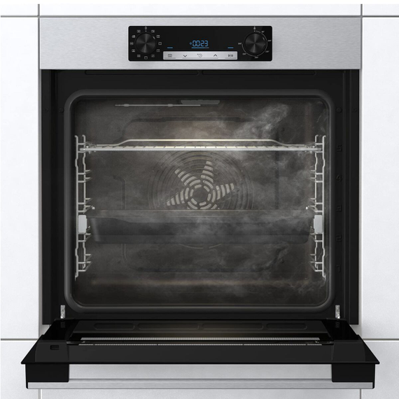 The Hisense BI62216AX MF oven is designed to offer high capacity and efficiency for the modern kitchen. With an internal capacity of 77 liters, it provides enough space to prepare large dishes or multiple containers simultaneously, making cooking easier for families or gatherings. It stands out for its energy rating A, ensuring responsible and efficient consumption, helping reduce electricity costs without sacrificing performance. Its maximum power of 3500 W guarantees fast and even heating thanks to a combined rotary and touch control system, allowing intuitive and precise operation of its functions. This oven features hydrolytic self-cleaning technology, based on steam cleaning, which simplifies maintenance by removing residues with minimal effort and without harsh chemicals. The structure combines materials such as glass and stainless steel, providing durability and a sturdy finish in silver and steel tones, ideal for blending with contemporary kitchen styles. The 60 cm width format is standard, fitting most kitchen cabinets designed for built-in appliances. Additionally, it includes an LED interior light that illuminates the cooking space, allowing monitoring without opening the door, thus improving thermal efficiency and safety. Its design targets users who value both functionality and ease of use in a generously sized oven, balancing advanced features with controlled energy consumption. Overall, the Hisense BI62216AX MF is a practical, reliable, and efficient solution for those seeking a multifunctional oven with current technical features and good everyday performance.