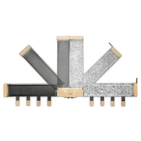 The Hkoenig WOD360 raclette is a multifunctional appliance designed to offer a versatile culinary experience, ideal for family or friend gatherings of up to 8 people. This 3-in-1 raclette combines the option to use it as a traditional raclette, a natural stone cooking surface, and a grill plate, thanks to its compact and functional design. With a power of 1400 W, it ensures fast and even heating to enjoy hot food at all times. The cooking surface measures 41.5 x 21.2 cm, providing enough space to prepare various ingredients simultaneously. Its design features a 180° rotating base that allows access from any angle of the table, and a practical fastening system with an elegant leather loop that connects the two parts of the appliance. The cooking stone is made of natural material, ideal for healthy and even cooking, while the grill plate allows cooking meats, vegetables, or fish with a crispy finish. The brown and black tones of the structure add a modern and warm touch, easily blending into any setting. Additionally, the device includes 8 non-stick pans and 8 wooden spatulas for direct use by each diner, facilitating handling and later cleaning, as both the stone and grill plate are easily removable. The inclusion of an on/off switch allows comfortable and safe control of the appliance. The Hkoenig WOD360 raclette is especially practical for informal dinners during cold months, offering flexibility to cook and share, integrating traditional and modern methods in a single kitchen tool. This equipment combines efficiency, design, and functionality for those seeking a complete device in its category.
