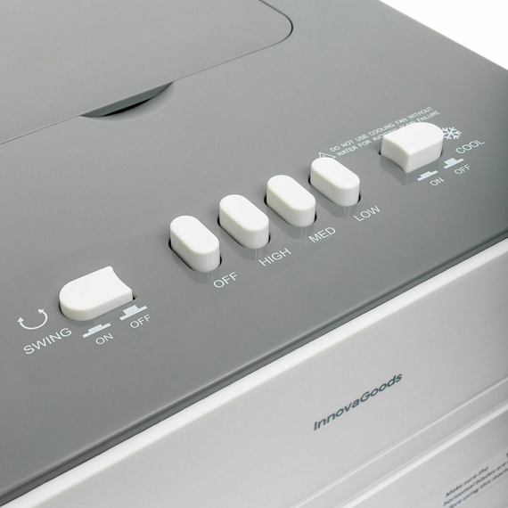 - 3 speeds, air flow can be adjusted: this evaporative cooler, humidifier and purifier enables high, medium and low speeds to be selected. In addition, the horizontal slats can be manually adjusted and the device features a button to activate the automatic oscillation of the vertical slats. Power: 65 W.