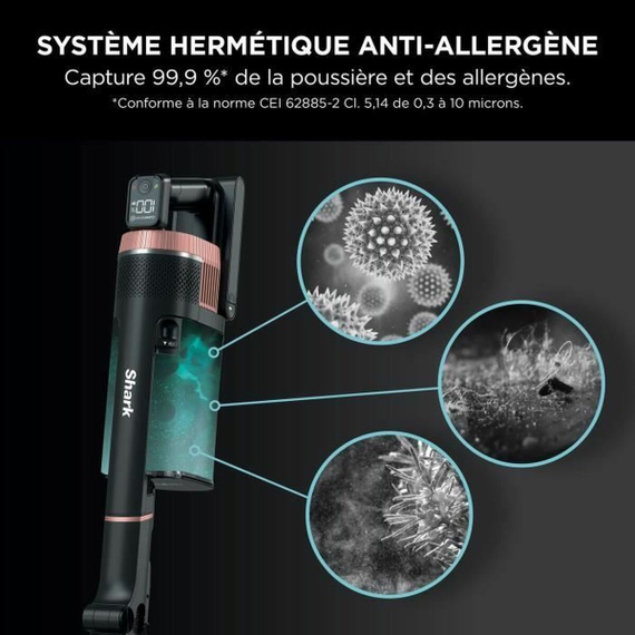 The SHARK Stratos IZ400EU is a cordless stick vacuum cleaner designed to provide efficient and comfortable cleaning at home. Equipped with DuoClean + PowerFins Plus technology, this model combines two specially designed brushes to capture fine particles and remove embedded dirt on various surfaces, from hard floors to carpets, ensuring deep cleaning. Its narrow nozzle makes it easier to reach corners and tight spaces where dirt tends to accumulate, enhancing the device’s versatility. It operates with a rechargeable battery, offering full freedom of movement without annoying cables, and comes with a charger to keep the vacuum always ready to use. Regarding design, it is available in several colors, including red, pink, and an elegant rose gold, adding a modern and sophisticated touch to the appliance. Additionally, it features LED lighting on the suction head, a practical feature that helps better visualize dust and dirt in low-light areas, facilitating more precise cleaning. The combination of these functions and finishes positions the SHARK Stratos IZ400EU as a balanced choice for those who need a powerful, comfortable, and aesthetically refined device for daily space maintenance.