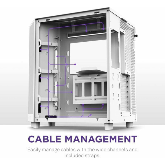 The NZXT CC-H61FW-01 ATX mid-tower case in white is designed to offer versatility and functionality for mid-range desktop systems. This midi-tower case supports motherboards of various form factors, including ATX, mATX, and Mini-ITX, facilitating integration into multiple setups and allowing flexible system upgrades. Made from steel and metal, it provides a sturdy and durable structure, while its dual-chamber design optimizes internal space management to improve airflow and air cooling. It features modern connectivity, including two USB 3.2 ports on the front panel for fast data transfer and easy peripheral access. Additionally, it includes practical buttons such as the power on/off switch for immediate system control. Its clean, minimalist white aesthetic makes it suitable for both home and professional environments where a balance between functionality and discreet design is needed. The NZXT CC-H61FW-01 meets the needs of users seeking an efficient case that supports multiple motherboard formats, facilitates thermal management thanks to its dual chamber, and offers current connectivity options while maintaining a solid build and elegant finish. This model represents a practical and versatile solution within the range of mid-tower PC cases.