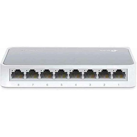 The TL-SF1008D from TP-Link is an unmanaged desktop switch designed to provide efficient and stable network connections in home or small office environments. This switch features 8 RJ-45 ports supporting Fast Ethernet speeds up to 10/100 Mbps, enabling interconnection of multiple devices with full duplex bidirectional data transmission to maximize performance and minimize network collisions. Its switching capacity reaches 1.6 Gbit/s, ensuring smooth traffic management between connected devices. With a MAC address table for 1000 entries, the device optimizes direct and efficient communication between nodes. The TL-SF1008D complies with IEEE 802.3u and IEEE 802.3x standards, ensuring compatibility and support for flow control features that enhance connection quality. Made of white plastic, its compact and lightweight design allows easy integration into any workspace or home setting, providing a neutral and professional look. It operates at an input voltage of 5V DC, ensuring moderate power consumption and operational stability. Its unmanaged nature allows simple and quick setup, ideal for users needing to connect multiple devices without complex configuration. In summary, the TL-SF1008D is a reliable and practical solution to expand or stabilize small-scale Ethernet networks, combining ease of use with robust and efficient operation.