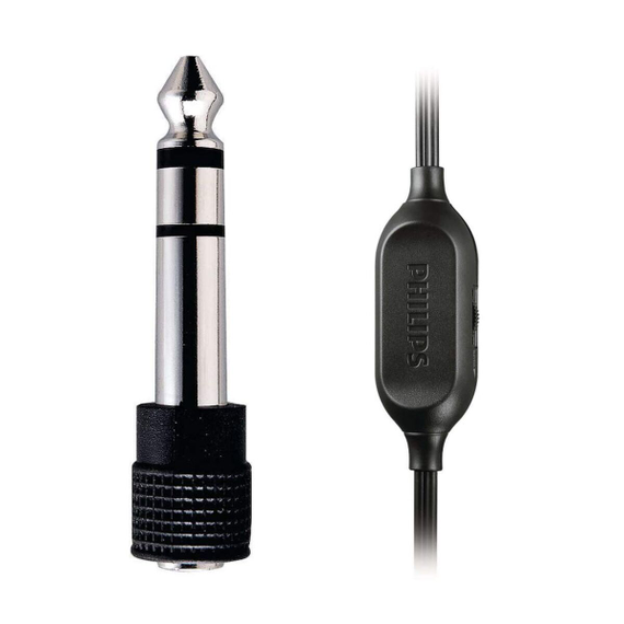 The Philips SHP2500/37 headphones with microphone offer a complete solution for those seeking high-quality audio both at home and in professional settings. This model stands out for its circumaural over-ear design, meaning the ear cushions fully cover the ear, maximizing sound isolation and comfort even during long sessions. Presented in an attractive combination of black, grey, and silver, and made from durable plastic, its lightweight structure is designed for versatile, fatigue-free use. It features a 3.5 mm jack connection, compatible with most TVs, computers, and audio equipment; it also includes a 6.3 mm jack adapter, expanding compatibility with home and professional devices. Its extra-long 6-meter cable provides freedom of movement, ideal for watching TV or listening to music without distance restrictions, while the integrated volume control on the cable allows for quick and convenient sound adjustment. Equipped with 40 mm diameter speakers that deliver clear and powerful sound, supported by a sensitivity of 106 dB/mW and a frequency response ranging from 15 to 22,000 Hz, these features let you enjoy detailed nuances in both dialogue and music. With a 70-ohm impedance and a maximum input power of 500 mW, it adapts well to both standard sources and more demanding equipment, without distortion at high volumes. The included installation guide makes setup easy, allowing you to take advantage of all its features from the start. In summary, the Philips SHP2500/37 are a practical, comfortable, and functional choice for those who value a combination of good sound quality, adaptability, and freedom of movement in their headphones for home or professional use.