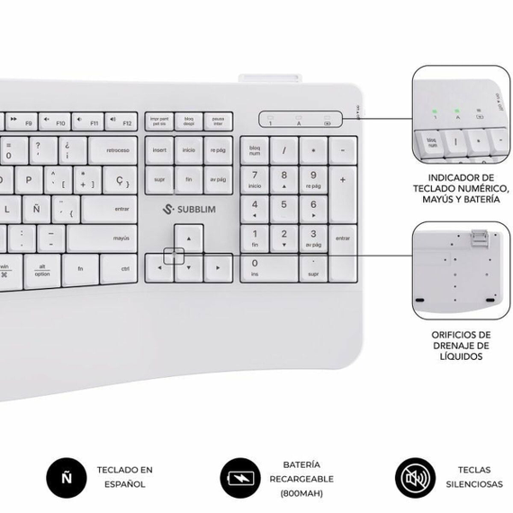If you're passionate about IT and electronics, like being up to date on technology and don't miss even the slightest details, buy Keyboard and Mouse Subblim SUBKBC-DCOPW1 White Spanish Spanish Qwerty QWERTY at an unbeatable price.