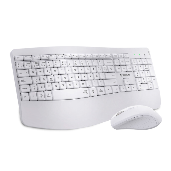 The OFFICE PROWAVE combo from Subblim is an advanced set designed to provide a comfortable and efficient user experience in office or remote work environments, integrating a keyboard and mouse with Bluetooth wireless connection for greater freedom and workspace organization. The keyboard is a Spanish QWERTY layout with a full design that includes a numeric keypad, ideal for tasks requiring fast numeric data entry and extensive use of functions in office software. Its white finish adds a modern and clean style that fits any professional or home setting. The accompanying mouse stands out for its high precision, with adjustable sensitivity up to 3200 DPI, allowing smooth movement and exact control, suitable for both detailed work and quick navigation. Bluetooth connectivity ensures compatibility with a wide range of devices without the need for extra cables, facilitating mobility and workspace organization. This combo offers a practical and functional solution, focusing on key aspects such as ergonomics, precision, and ease of use, without sacrificing style or modernity. In short, the SUBBLIM Combo Dual OFFICE PROWAVE WHITE delivers a balanced combination of performance and design for those seeking reliable and versatile equipment for daily tasks.