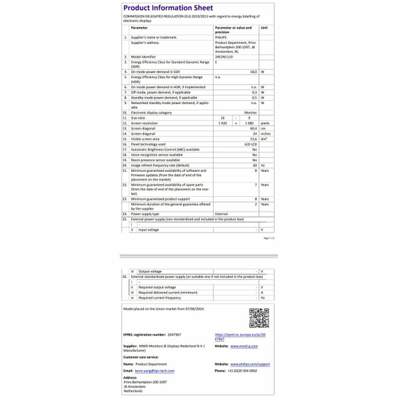 If you're passionate about IT and electronics, like being up to date on technology and don't miss even the slightest details, buy Monitor Philips 24E2N1110/00 23,8" Full HD at an unbeatable price.