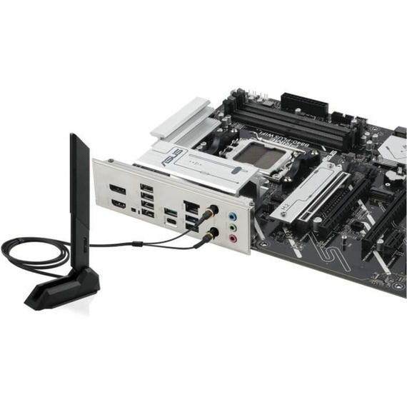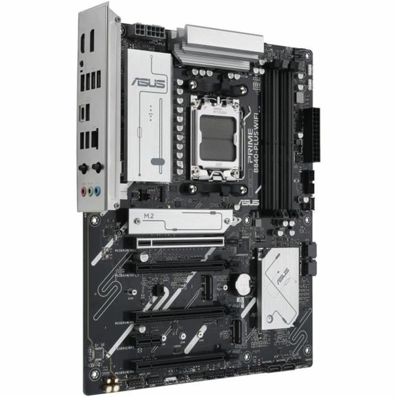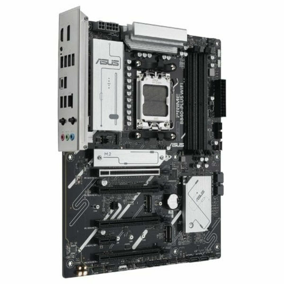 The ASUS PRIME B840-PLUS WIFI Motherboard is a motherboard designed for systems with processors compatible with the AMD AM5 socket, featuring the AMD B840 chipset that delivers balanced performance for desktop setups aimed at users seeking stability and advanced connectivity. Its ATX form factor ensures broad compatibility with most cases and efficient internal component layout, facilitating both installation and thermal management. It supports the latest connection technologies, including Intel Wi-Fi 6, providing fast and stable wireless connectivity, ideal for activities demanding high speed and low latency such as online gaming or streaming. Regarding ports and connectivity, it includes HDMI outputs for high-definition digital video and multiple USB and USB-C options, offering compatibility with a wide range of current peripherals and enabling fast data transfers. Its compatibility with modern operating systems, especially Windows 10, ensures easy driver installation and support for the latest applications and games. The black and gray finishes contribute to a sober, professional look and blend well in custom builds. This motherboard stands as a reliable solution in its segment, balancing essential features for stable performance with flexible connectivity for users with diverse needs.