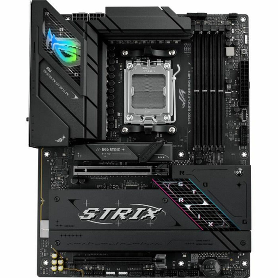 The ASUS ROG STRIX B850-F GAMING WIFI Motherboard from Asus is a motherboard designed to deliver advanced performance and compatibility with the latest desktop technologies. It features the AMD B850 chipset and an AMD AM5 socket, allowing the use of the newest AMD processors with native support for DDR5 memory, providing a significant boost in speed and energy efficiency. Its ATX form factor ensures easy installation and better heat dissipation in mid to large-sized cases. Additionally, it integrates advanced connectivity with Wi-Fi 7, the latest generation of wireless networks that guarantees extremely fast and stable data transfer, ideal for online gaming and high-quality streaming. The motherboard also offers multiple connection ports such as HDMI, USB, and USB-C, ensuring compatibility with all types of modern peripherals and devices, optimizing system connectivity and flexibility. Its black finish and included installation guide contribute to a simple assembly experience and an aesthetic suited for gaming or professional setups. Aimed at users seeking stability, expansion capacity, and cutting-edge technologies, this Asus motherboard is a solid platform for building high-performance PCs capable of demanding tasks and current games. In summary, the ASUS ROG STRIX B850-F GAMING WIFI stands as a complete and modern solution for AMD-based systems, combining performance, connectivity, and advanced compatibility in a robust and functional design.
