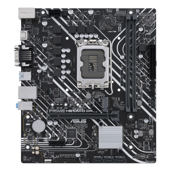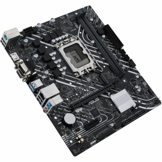 The Asus ASUCMPH610MD0 motherboard, model Prime H610M-D D4, is a reliable and versatile solution for desktop PCs aimed at users seeking balanced performance with the latest generation Intel processors. Designed in MicroATX form factor, this motherboard features the Intel H610 chipset, compatible with LGA 1700 sockets, allowing use of multiple Intel processor generations, from entry-level models like Intel Celeron to mid and high-end Intel Core i3, i5, i7, and i9 series. It stands out for its support of DDR4-SDRAM memory with up to 64 GB capacity via two DIMM slots, offering a balance between performance and cost thanks to DDR4 technology, widely used and efficient for multitasking and office or multimedia applications. For storage, it supports M.2 and SATA3 drives, enabling installation of both SSDs and HDDs, ensuring high transfer speeds and ample storage capacity. Connectivity includes several USB 2.0 and USB 3.2 ports, plus a USB-C port, providing flexibility for modern devices and peripherals. For video output, it includes VGA and HDMI ports, allowing connection to various monitors with good image quality for general or basic professional use. It also features a Gigabit Ethernet interface for fast and stable wired network connections. The Asus Prime H610M-D D4 is a solid platform well suited for PCs focused on everyday tasks, multimedia, or mid-level work environments, offering compatibility and flexibility with current components and a foundation for future upgrades with compatible processors and memory. Its MicroATX design facilitates integration into compact cases without sacrificing essential features. In summary, this motherboard represents a balanced option for users needing a stable, up-to-date platform with upgrade potential within the Intel socket 1700 processor range.