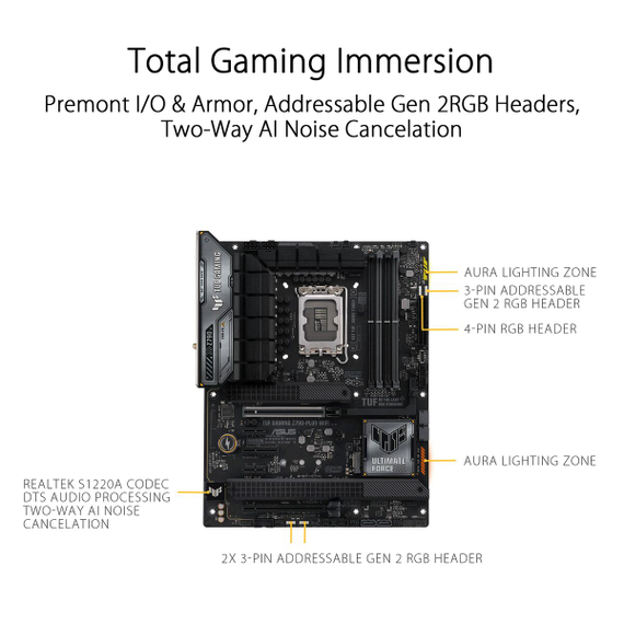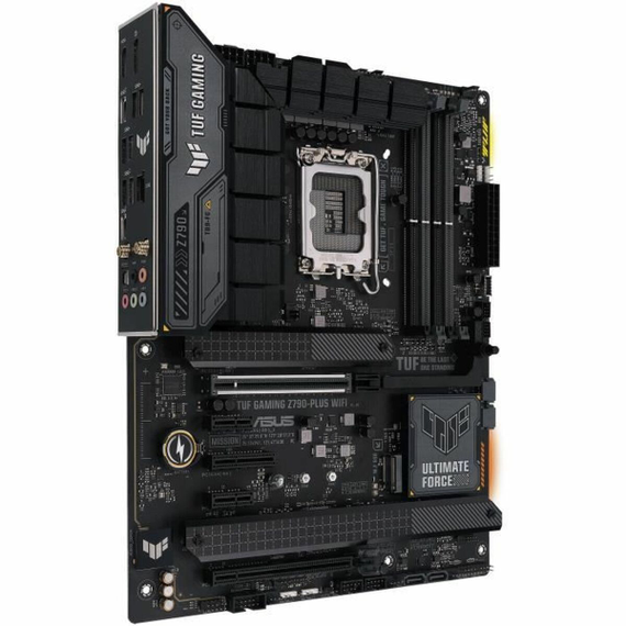The Asus TUF GAMING Z790-PLUS WIFI motherboard is a key component designed for advanced performance in desktop setups requiring stability and next-generation connectivity. This Motherboard features the Intel Z790 Express chipset, ensuring compatibility and efficiency with the latest Intel processors, providing a robust platform for gaming and demanding tasks. Its LGA 1700 socket supports 12th and 13th generation Intel CPUs, allowing full use of current processing capabilities. With an ATX form factor, it easily fits standard cases, facilitating system expansion and configuration. It also offers advanced connectivity with HDMI ports for high-definition digital video and USB-C, enabling fast data transfers and connection to modern peripherals. This model supports DDR5 SDRAM, delivering higher bandwidth and energy efficiency compared to previous generations, resulting in significant overall system performance improvements. Integrated Bluetooth adds convenience for wireless external device connections without extra hardware. The board is optimized for Windows 10 and supports processors from Intel Celeron to high-performance models, making it versatile for both home and professional environments. The TUF series, known for durability and efficient heat dissipation, includes military-grade components and cooling systems designed to maintain stability under heavy loads. In short, the ASUS TUF GAMING Z790-PLUS WIFI offers a solid, advanced foundation for users seeking a balance of power, connectivity, and reliability in a high-performance PC.