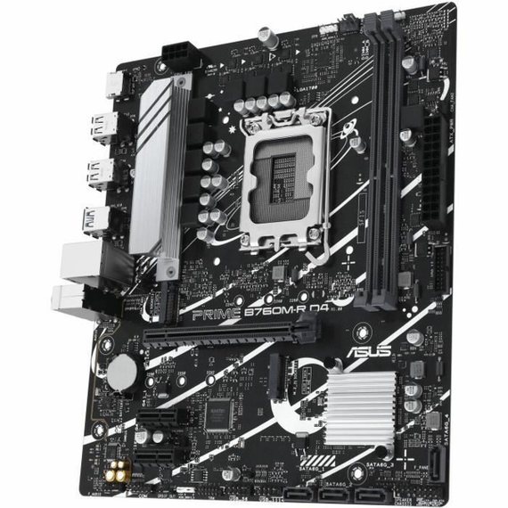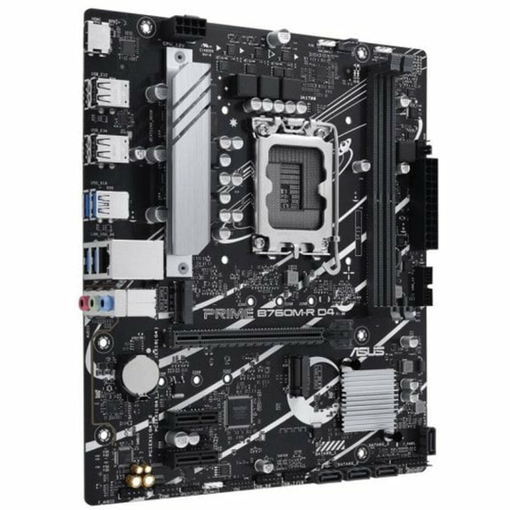 The Asus PRIME B760M-R D4 motherboard, model 90MB1HA0-M0EAY0, offers a balanced and versatile solution for desktop systems with the latest generation Intel processors using LGA 1700 socket. Its Micro ATX (mATX) form factor provides a compact size, ideal for cases requiring space optimization without sacrificing functionality or connectivity. It is equipped with the Intel B760 chipset, supporting modern configurations and delivering adequate performance for users seeking reliability and compatibility with current technologies. It supports DDR4 SDRAM memory, allowing integration of affordable RAM modules compatible with a wide range of components, maintaining a good cost-performance balance. Key features include essential ports such as HDMI for high-definition digital video output, USB 2.0 connectivity for basic peripherals, and advanced surge protection that ensures system stability and safety against electrical fluctuations. This motherboard is also compatible with operating systems like Windows 10, providing a stable and proven environment for most productivity and entertainment applications. Its black color and understated design make it suitable for both professional and home setups without requiring large spaces or complex configurations. Overall, the Asus PRIME B760M-R D4 stands out by offering a solid balance of modernity, compatibility, and practicality, making it a reliable and efficient platform for users who value stability and a strong foundation for their computer systems.