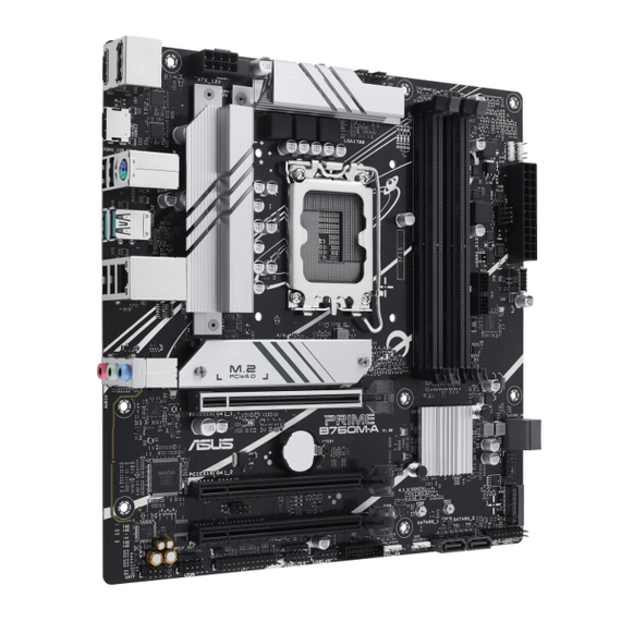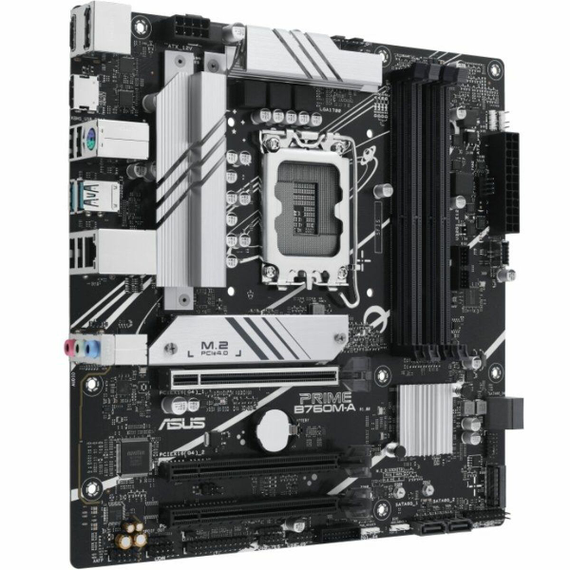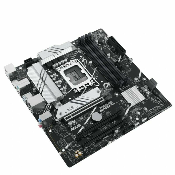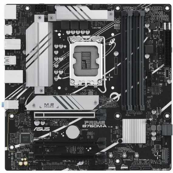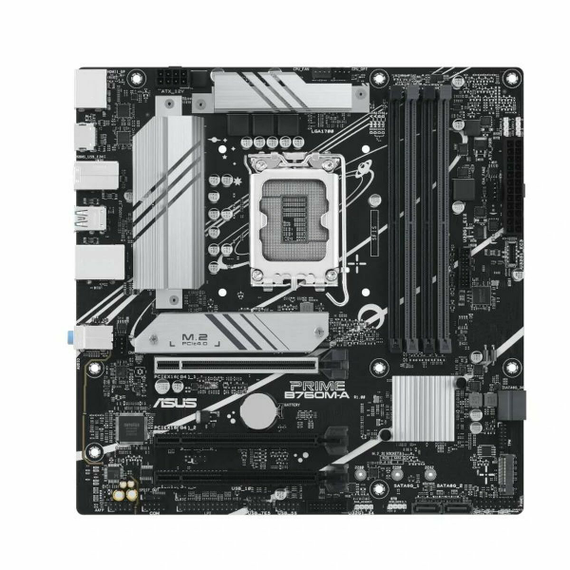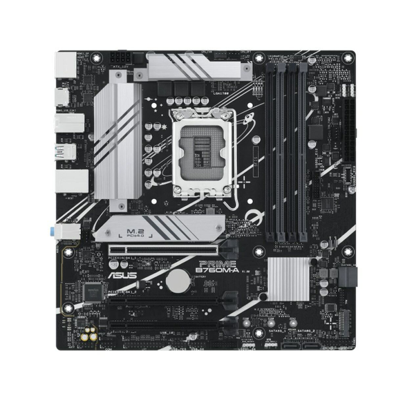 The Asus PRIME B760M-A-CSM DDR5 Motherboard is designed to provide a solid and versatile platform for PC systems based on Intel processors, using the modern Intel B760 chipset and an LGA 1700 socket that ensures compatibility with the latest Intel processor generations, including Intel® Celeron®, Pentium® Gold, and Core™ i3, i5, and higher series. Its MicroATX (mATX) form factor allows compact integration into smaller cases without sacrificing expansion potential. This model supports next-generation DDR5-SDRAM memory with a maximum capacity of up to 128 GB across its DIMM slots, providing ample capacity for demanding multitasking environments and applications requiring high memory bandwidth. For graphics connectivity, the board features dual HDMI and DisplayPort outputs, facilitating connection to modern displays with high image quality and support for advanced resolutions. For storage, it includes versatile interfaces combining 4 SATA III ports and 2 M.2 slots, supporting both HDD and SSD drives, enabling fast and efficient setups from mass storage to ultra-fast drives for loading or data transfer. In networking, it incorporates a 2.5 Gigabit Ethernet interface, offering superior performance over standard connections, ideal for users needing high-speed wired connectivity for gaming, streaming, or professional tasks. Its expansion and connectivity options are completed with high-speed USB ports, including USB 3.2 Gen 1 and a USB-C port, ensuring compatibility and fast transfer with modern peripherals. The PRIME B760M-A-CSM combines efficiency, scalability, and modern technology in an accessible, well-equipped format, making it a balanced choice for those looking to build or upgrade a desktop with advanced technologies and future-ready support. This motherboard is a reliable option for mid-range PC systems requiring upgradable performance and full connectivity in a compact size.