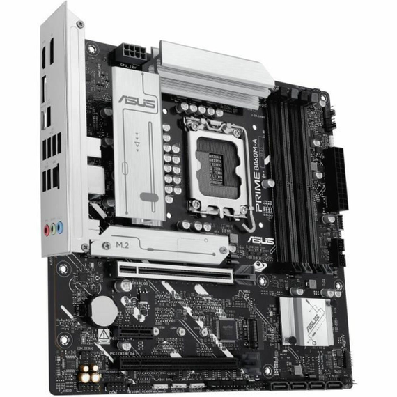 The Asus 90MB1K00-M0EAYC motherboard is designed for enthusiasts and advanced users seeking a balance of versatility and power in desktop systems, featuring an LGA 1851 socket compatible with the latest Intel Core Ultra processors and technologies like Intel Turbo Boost 2.0 and Max 3.0, ensuring fast response even under demanding workloads. Its MicroATX form factor (24.4 x 24.4 cm) allows easy integration into compact cases without sacrificing expansion capability. The Intel B860 chipset supports up to 256GB DDR5 memory via four DIMM slots, reaching speeds over 8666MT/s (OC), with optimizations for XMP profiles and exclusive boosts through ASUS AEMPIII. Connectivity is a highlight, offering two M.2 slots (one supporting PCIe 5.0 x4, the other PCIe 4.0 x4), four 6 Gb/s SATA ports, and a full range of USB ports (including 20 Gbps USB Type-C and up to 10 Gbps USB Type-A) for fast data transfer and modern peripheral connections. Expansion includes a PCIe 5.0 x16 slot for high-performance graphics cards and two additional PCIe 4.0 slots, supporting demanding video or storage setups. For graphics, it features two DisplayPort and one HDMI, enabling multi-monitor management directly from the motherboard. Networking is handled by a 2.5 Gb Realtek Ethernet card with ASUS LANGuard protection, enhancing stability and security against interference. Audio is another strong point, with a Realtek 7.1 codec, premium components, shielding, and support for high-definition audio at 24-bit/192 kHz, ensuring quality for gaming and multimedia. The I/O panel is efficiently arranged, including headers for fans, AIO ports, RGB lighting (Aura Sync), Thunderbolt (USB4), and various internal expansion options, aimed at customization and advanced system control. This motherboard is a solid, flexible choice for building up-to-date PCs, delivering high performance and extensive expansion possibilities within the compact MicroATX format.