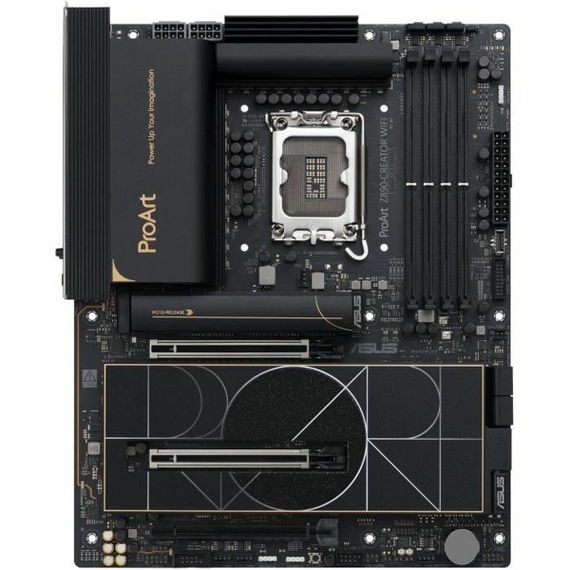 The ASUS PROART Z890-CREATOR WIFI motherboard from the renowned brand Asus is a high-performance motherboard designed for workstations and PCs focused on advanced creation and productivity. Built on the Intel Z890 chipset, this motherboard supports the LGA 1851 (Socket V1) socket, compatible with the latest Intel processors, ensuring powerful multitasking capabilities and stable, efficient performance. Its ATX form factor offers a spacious layout for easy installation and optimal internal component organization, ideal for custom or professional setups. This motherboard stands out for its advanced connectivity, including integrated Wi-Fi and Bluetooth, enabling fast and stable wireless connections without external adapters. It also features an HDMI output to connect monitors or display devices with high image quality, as well as an Ethernet LAN interface for reliable, low-latency wired connections essential in professional environments. Storage support includes four SATA ports, facilitating connection of multiple hard drives or SSDs to expand capacity and data access speed. With 256 MB of onboard memory, this motherboard is prepared to handle complex configurations and intensive graphic processing or caching demands. Its black design offers an elegant, understated finish that fits any professional tower interior. In short, the ASUS PROART Z890-CREATOR WIFI is a robust and versatile choice meeting the demands of professional users who require reliability, advanced connectivity, and compatibility with the latest technologies in an ATX setup.