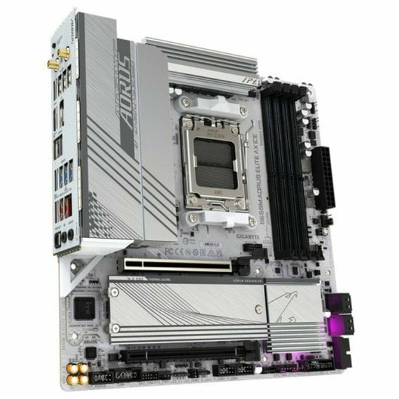 The Gigabyte B650M AORUS ELITE AX ICE is a motherboard designed for users who need solid performance and advanced connectivity in AMD processor-based systems. Built on the AMD B650 chipset and compatible with the AMD AM5 socket, this board supports DDR5 memory up to 128 GB, ensuring optimal speed and capacity for demanding tasks, gaming, or content creation. Its MicroATX form factor allows good compatibility and installation in compact cases, ideal for space-saving setups without sacrificing features. Equipped with the latest connectivity standards, it includes support for Wi-Fi 6E and Bluetooth 5.3, ensuring fast and stable wireless connections, while the wired network interface benefits from a 2.5 Gbps Ethernet connection that enhances data transfer on home or professional networks. The motherboard offers a wide range of expansion and storage options, with 6 SATA3 ports and 2 M.2 slots for solid-state drives, plus numerous USB connections including up to 7 USB 3.2 and USB 2.0 ports, ideal for connecting modern peripherals. Video output is versatile, featuring HDMI and DisplayPort ports that facilitate connection to multiple monitors or HD-compatible devices. Presented in white, this motherboard combines aesthetics with functionality, part of Gigabyte’s renowned AORUS series, known for reliability and a design aimed at both gamers and professionals demanding stable, consistent performance. This motherboard strikes a balance between cutting-edge technologies and compatibility with current components, providing a robust platform to build powerful and efficient systems. In short, the Gigabyte B650M AORUS ELITE AX ICE is a solid choice for those seeking an up-to-date motherboard with support for the latest AMD technologies and comprehensive connectivity in a compact format.