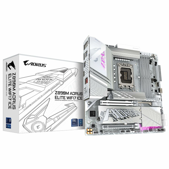The Gigabyte Z890M AORUS ELITE WIFI7 ICE Motherboard is a motherboard designed for high-performance systems featuring Intel processors thanks to its Intel Z890 chipset, robust and advanced to support the latest technologies and ensure stability in demanding operations. This board includes the LGA 1851 socket, guaranteeing compatibility with the newest range of Intel CPUs, offering upgrade and performance optimization options. It features a hybrid design in ATX and mATX form factors, fitting both traditional tower setups and more compact spaces, providing flexibility in building or upgrading the system. It stands out for its advanced connectivity, including multiple USB ports to connect various peripherals with high transfer speeds, as well as built-in support for Bluetooth and Wi-Fi, enabling stable and fast wireless connections without extra components. It is aimed at Windows-based systems, ensuring compatibility and optimization with the most widely used home and professional software. Its white finish adds a modern, clean aesthetic, suitable for visible designs or custom setups. In summary, this Gigabyte motherboard combines a modern chipset, support for the latest socket, versatile form factor, and full connectivity, making it a suitable solution for those looking to build or upgrade a PC with a balance of power, functionality, and adaptability.