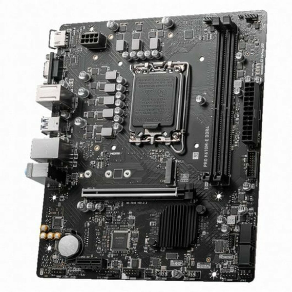 The MSI PRO H610M-E DDR4 motherboard is a key component for building or upgrading computer systems aimed at users who need stability and compatibility with modern technology. This MicroATX motherboard features an H610 chipset, designed to support the latest Intel processors with an LGA 1700 socket, ensuring strong performance potential and energy efficiency. Its MicroATX (mATX) form factor makes it ideal for compact systems without sacrificing expansion options. It supports up to 64 GB of DDR4-SDRAM memory, offering a balance of speed and compatibility at an affordable cost, suitable for environments that do not require the newest DDR5 memory but do need solid performance. The board includes integrated features such as a VGA video interface and Gigabit Ethernet network connection, providing fast and stable wired speeds essential for tasks demanding efficient data transfers and continuous flow. Additionally, its storage capacity is enhanced by a 256 MB buffer, contributing to effective data management and overall system performance. Its design and configuration make this motherboard compatible with a wide range of components, facilitating upgrades and customization according to specific user needs, from home setups to offices or light workstations. The MSI PRO H610M-E DDR4 offers a balanced, economical, and reliable solution within the motherboard segment for users seeking to maximize the capabilities of recent Intel processors without sacrificing the versatility and stability characteristic of the H610 platform. It is a technically sound choice for computing projects with precise functional requirements and controlled budgets.