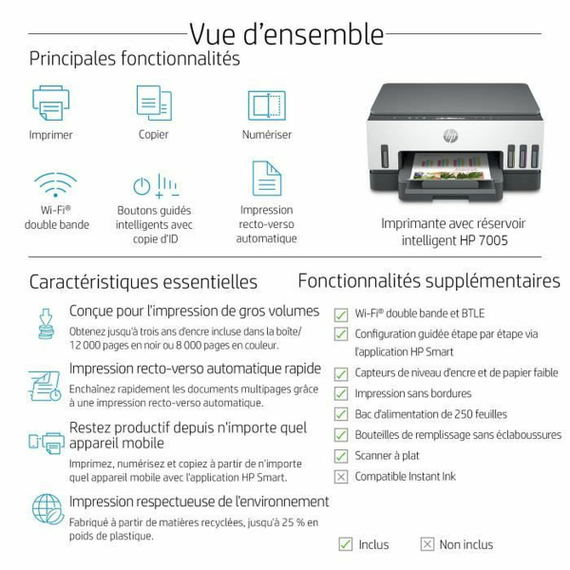 The HP 28B54A multifunction printer is a device designed to meet various printing, copying, and scanning needs with efficiency and quality. This model features inkjet and thermal printing technology, providing versatility when working with different media and delivering sharp results in both text and color images. It stands out for its ability to print at different speeds, with options of up to 5, 9, and 15 pages per minute, adapting to the workflow whether for home use or small offices. Its integrated "all-in-one" design allows handling multiple tasks without additional equipment, while its LCD screen facilitates operation and direct configuration from the device. The unit has a white and gray finish, combining a modern and discreet look typical of multifunction devices. Manufactured in China, this printer offers an HP Smart Tank color ink system, providing greater autonomy and lower cost per page compared to traditional cartridges, ideal for users who print regularly. Due to its compact format and comprehensive functions, the HP 28B54A positions itself as a practical and reliable solution for those needing a versatile device capable of managing documents and images with good quality and without technical complications. Overall, this model represents a balanced option in the ink tank multifunction printer segment, aimed at users who value the balance between operating cost and functionality.