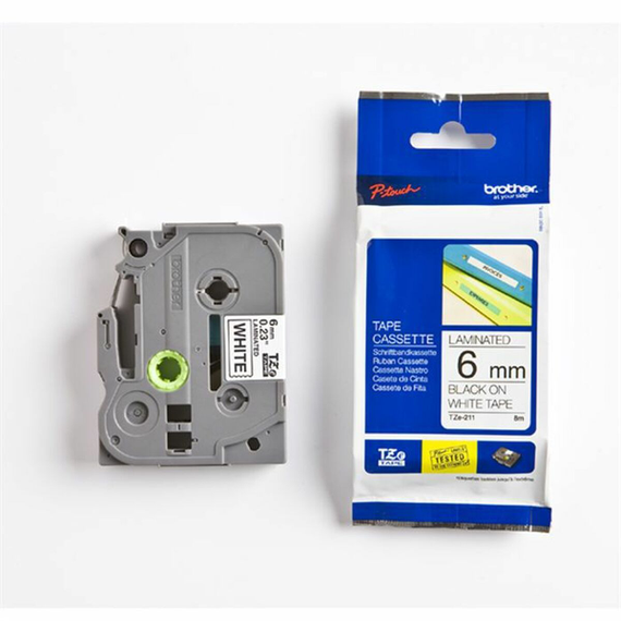 The Brother TZe211 laminated tape is a consumable specifically designed for P-Touch label makers, offering a reliable and durable solution for label creation. This original cartridge uses thermal printing technology that ensures sharp, wear-resistant text, ideal for signage and organization in both professional and home environments. The tape features a white background with black text, a classic combination that allows clear reading even from a distance. Made of plastic, it has a standard width of 6 mm and a length of 8 meters, providing good performance and versatility for various applications, from labeling files and shelves to identifying cables or equipment. Compatible exclusively with Brother devices, this tape includes a surface laminate that protects the print against scratches, chemicals, and light, ensuring a durable and professional label. Its cartridge format makes replacement and installation easy, maintaining the quality and reliability characteristic of the brand’s products. In summary, the TZe211 tape for Brother label makers is a key component for those needing high-quality, durable, and consistently legible labels for identification and organization tasks.