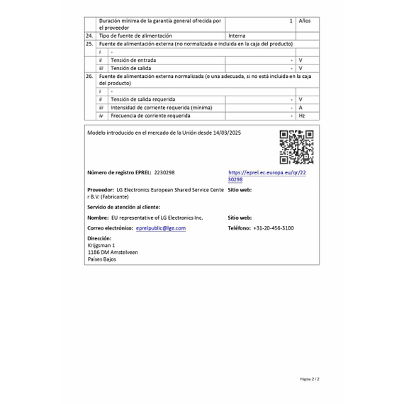 The LG 83-inch Smart TV is a standout choice for users seeking a large-format visual experience with high definition and advanced connectivity. This television offers a 4K Ultra HD resolution of 3840 x 2160 pixels, ensuring sharp and detailed images, ideal for enjoying movies, series, or video games with superior quality. Its black flat screen provides an elegant and modern design that fits easily into any space. This Smart TV runs on the WebOS version 25 operating system, which offers easy access to a wide variety of apps and online services, facilitating navigation and interactive content enjoyment. It also features built-in WiFi connectivity for fast and stable Internet access. For gaming, it includes technologies such as AMD FreeSync and NVIDIA G-SYNC, which synchronize the refresh rate to prevent flickering or image interruptions, enhancing the player experience. Its sound system delivers an estimated RMS power of 40W, offering clear and immersive audio. Regarding signal reception, it has a dual analog and digital tuner compatible with DVB-C, DVB-S, DVB-S2, DVB-T, and DVB-T2, ensuring broad coverage for terrestrial and satellite broadcasts with various technologies. It is important to note that, although its energy rating is F, the distribution of its components and features focus on multifunctional performance and audiovisual quality on a large screen. Overall, this LG 83" Smart TV combines advanced viewing, versatile connectivity, and image synchronization technologies, positioning it as a complete solution for high-definition home entertainment.