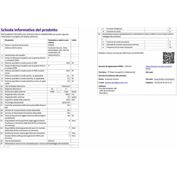 The Philips 43PUS7810/12 TV is a Smart TV that delivers an outstanding visual experience thanks to its 43-inch QLED screen with 4K Ultra HD resolution, providing sharp images, vivid colors, and high contrast for detailed and realistic content enjoyment. Made in Spain, it combines local quality with advanced technology. This model stands out for its built-in WiFi connectivity, which facilitates access to streaming platforms and smart apps, allowing easy and intuitive navigation through its Smart TV operating system. It also includes an ergonomic remote control that enhances handling comfort. Regarding sound, it features an equalizer to adjust audio settings and optimize the listening experience according to user preferences, adapting to movies, music, or TV shows. Its black color design offers an elegant and sophisticated finish that fits seamlessly into any home environment. This TV is ideal for those seeking a balanced product in size and features, with advanced visual technology, modern connectivity, and sound customization options that enrich everyday entertainment. In short, the Philips 43PUS7810/12 is a reliable choice within the mid-sized smart TV segment, aimed at delivering image quality and smart functionality for the contemporary user.