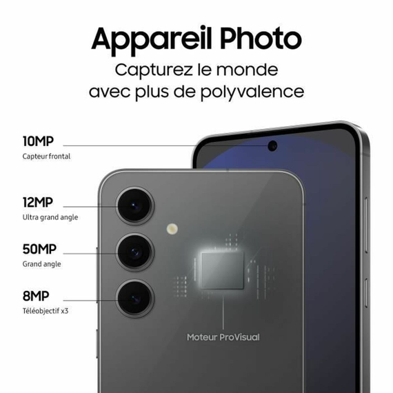 The Samsung Galaxy S24 FE is an advanced smartphone designed to offer an exceptional balance of performance, durability, and visual experience. Available in gray, graphite, and steel colors with a build combining durable plastic and premium details, this device features a Dynamic AMOLED 2X display in two sizes, 6.2" and 6.7", delivering bright, sharp images and vivid colors, along with slim bezels to maximize viewing space. Powered by the Samsung Exynos 2400e processor, it provides smooth, advanced performance, especially tailored for gaming and heavy multitasking. The Galaxy S24 FE also stands out for its AI-enhanced camera system with ProVisual Engine, ensuring captures with finer detail, clarity even in low light, and high-quality optical zoom without loss of definition. Its advanced editing features include Photo Assist, an intelligent tool for resizing, removing elements, and turning drawings into images, facilitating exclusive visual content creation. For protection, the device includes Corning® Gorilla® Glass Victus®+ on both sides and holds an IP68 rating, ensuring effective water and dust resistance for long-lasting, safe use. The 4,700 mAh battery is optimized to provide extended autonomy for gaming and uninterrupted video playback. Additionally, it includes built-in sensors like GPS, accelerometer, and barometer for a complete experience. Note that due to regional restrictions, Samsung Pay may not be available, and NFC alternatives such as Google Play are recommended for mobile payments. Overall, the Samsung Galaxy S24 FE represents a balanced and capable solution in the smartphone segment, aimed at users who value both durability and power in photography, gaming, and multimedia.