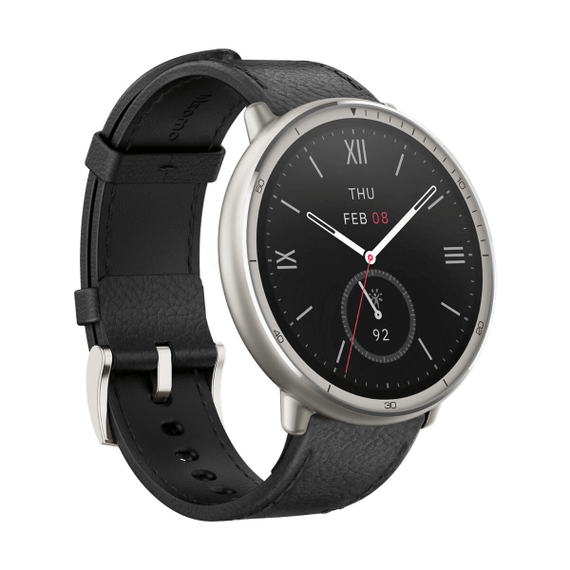 The smartwatch Amazfit ACTIVE 2R NFC PREMIUM is an advanced solution for those seeking sports monitoring and style on their wrist. Available in black and silver, this smart watch features a high-quality leather strap and a durable build, making it ideal for both daily wear and sports activities. Bluetooth connectivity allows easy syncing with smartphones, enabling real-time notifications, calls, and messages. Its highly responsive touchscreen ensures smooth, intuitive interaction, complemented by smart features like NFC for fast and secure payments. Key sensors include the accelerometer, gyroscope, and ambient light sensor, which track physical activity and lighting conditions to adjust the display and provide accurate real-time data. Additionally, its water resistance lets you use the device during workouts in the rain or everyday water activities, ensuring durability and reliability. This model meets the needs of users who value both advanced technology and elegant design, offering compatibility and comfort for everyday use.