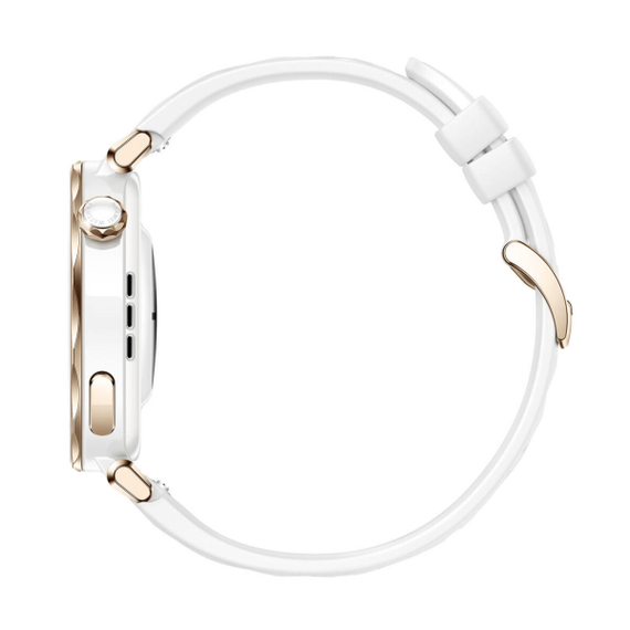 The Huawei Watch GT 5 Pro is a smartwatch that combines elegant design with high-quality materials, featuring a 42mm nanocrystalline ceramic case and a snow white fluoroelastomer strap that provide durability and comfort. Its durable sapphire crystal screen offers strong scratch protection while enhancing aesthetics with a refined finish. This smartwatch includes advanced sports and health monitoring functions, such as specialized golf mode with access to over 15,000 courses featuring 3D maps and technical tips, and an improved Trail Run mode with segmented navigation, off-track alerts, and real-time tracking. For diving enthusiasts, it supports apnea dives up to 40 meters with professional features like a floating stopwatch and endurance training. In general fitness, it offers more than 100 training modes, personalized assessment, and a Stay Fit app that manages calorie intake and energy deficit to help maintain a healthy balance. The Huawei Sunflower positioning system delivers superior accuracy through an advanced satellite tracking algorithm, complemented by RouteDraw to create creative routes with real-time maps directly on the wrist. For personal care, it tracks the menstrual cycle with deep learning algorithms and advanced sleep monitoring that detects abnormal breathing patterns. Its design includes an ultra-hard nanofilm finish ensuring exceptional resistance to wear, water, and corrosion, certified by IP69K protection against high-pressure water jets. Additionally, its battery lasts up to 7 days maximum, with typical use up to 5 days and up to 3 days with Always On Display active. The interface is optimized for easy navigation with color-coded apps, Celia keyboard for voice or text input, and access to the Watch AppGallery store for convenient app installation. Incorporating technologies like an accelerometer, barometer, and built-in speakers, this smartwatch is a sophisticated and functional choice for users seeking precision, durability, and refined design in a device suited for both sports and daily lifestyle.