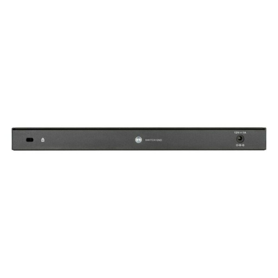 The DGS-1016S from D-Link is a desktop switch designed for network environments requiring high efficiency and reliability. It features 16 RJ45 ports supporting speeds of 10/100/1000 Mbps, enabling Gigabit Ethernet connections for fast and stable data transfer. This model complies with IEEE 802.3 standards, including 10BASE-T, 100BASE-TX, 1000BASE-T, 802.3x Flow Control for flow control, 802.1p QoS for quality of service, and 802.3az EEE for energy efficiency, reducing power consumption without sacrificing performance. Its switching capacity is 32 Gbps, with advanced features like Auto-MDI/MDIX crossover on all ports eliminating the need for special crossover cables, and a secure store-and-forward scheme that improves packet integrity and processing speed. It supports jumbo frames up to 9,216 bytes and offers auto-negotiation and adaptation to speeds and duplex modes (full and half), facilitating integration with various devices and networks. Additionally, it includes a quality of service architecture with 8 strict priority queues, optimizing traffic and prioritizing critical data to ensure efficient flow.