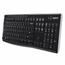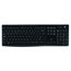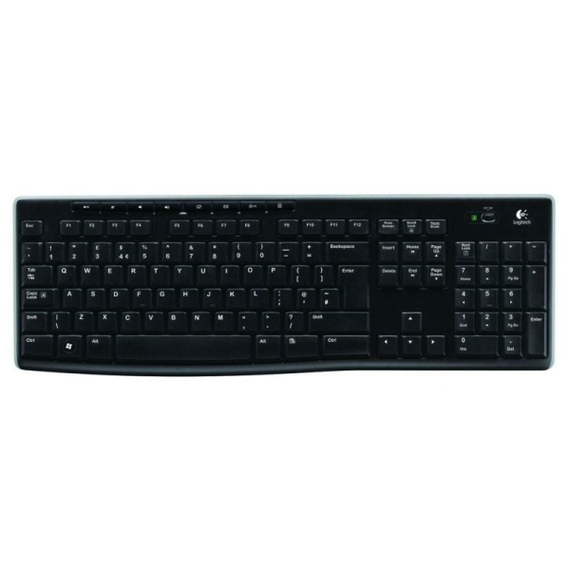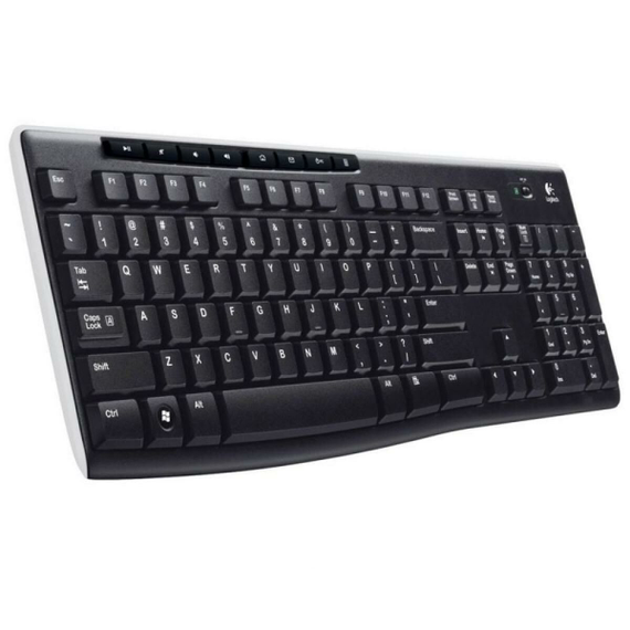 Logitech® Wireless Keyboard K270. Reliable wireless-wherever you use your keyboard. The tiny Logitech Unifying receiver is small enough to stay in your laptop. Plus, you can easily add another compatible mouse or keyboard-without the hassle of multiple USB receivers. With Logitech Advanced 2.4 GHz wireless connectivity, you'll enjoy virtually no signal loss from up to 10 meters away.* You can go for two years without battery hassles.** Eight hot keys and plug-and-play setup that takes just seconds add to the simplicity. The familiar, full-size layout-including number pad-gives you all the right keys right where you'd expect them. And it's built to last with the high quality and reliability Logitech is known for-with a spill-resistant design*** and UV-coated keys for durability.