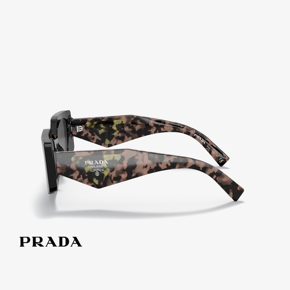 Unike dhe klasike janë syzet e diellit dedikuar femrave nga marka Prada të cilat janë me kornizë të theksuar të kombinuar me ngjyrë të zezë dhe të hirtë. Syzet janë me dimensione 51 x 140 mm dhe janë punuar nga plastika.