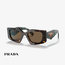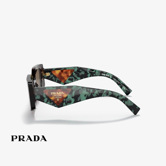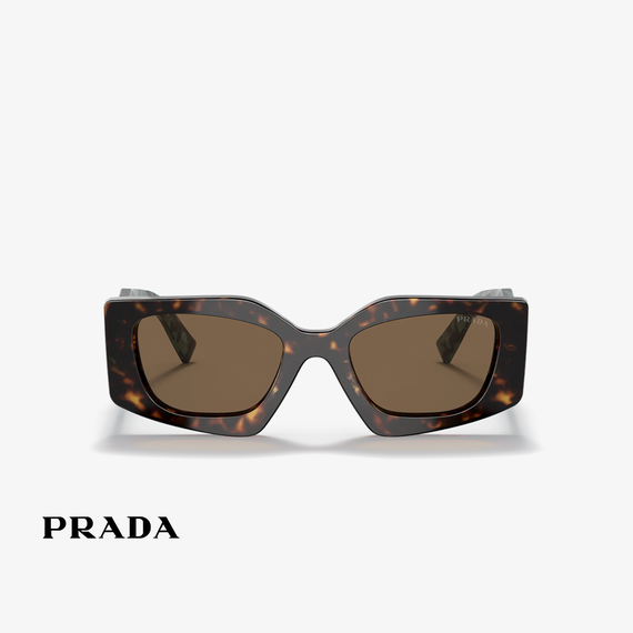 Unike dhe klasike janë syzet e diellit dedikuar femrave nga marka Prada të cilat janë me kornizë të theksuar të kombinuar me ngjyrë të kaftë të errët dhe të bruzë. Syzet janë me dimensione 51 x 123 mm dhe janë punuar nga plastika.