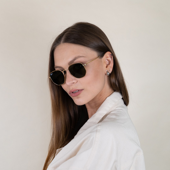 Do të keni një stil të bukur me këto syze dielli në formë kornize gjashtëkëndore që janë prej metali. Këto syze dielli Vintage janë të përmasave mesatare. Burrat dhe gratë mund të veshin lentet e sheshta gjashtëkëndore Ray-Ban sepse dizajni u krijua posaçërisht për t'iu përshtatur të gjithëve.